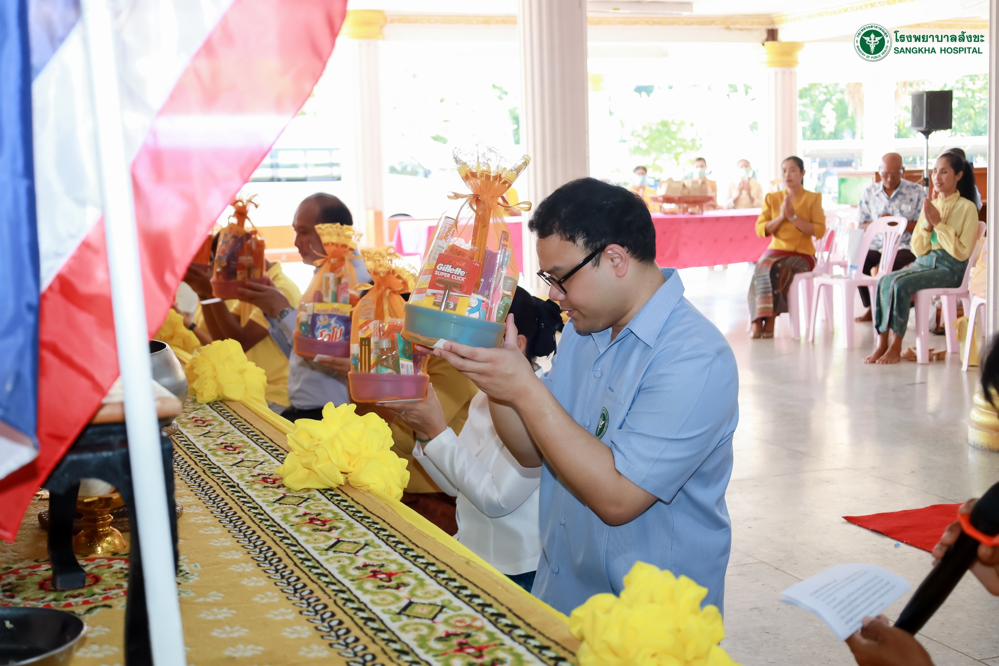 หน้าแรก คณะกรรมการงานสมาธิบำบัด โรงพยาบาลสังขะ จัดกิจกรรมทำบุญตักบาตร เนื่องในโอกาสวันเฉลิมพระชนมพรรษา พระบาทสมเด็จพระวชิรเกล้าเจ้าอยู่หัว รัชกาลที่10 และวันสำคัญทางพระพุทธศาสนา วันอาสาฬหบูชา, วันมาฆบูชา โดยมี นายแพทย์วันฉัตร ธิมาสาร รองผู้อำนวยการโรงพยาบาลสังขะ เป็นประธานในพิธี 362203266_596214499363907_6892410540739080820_n