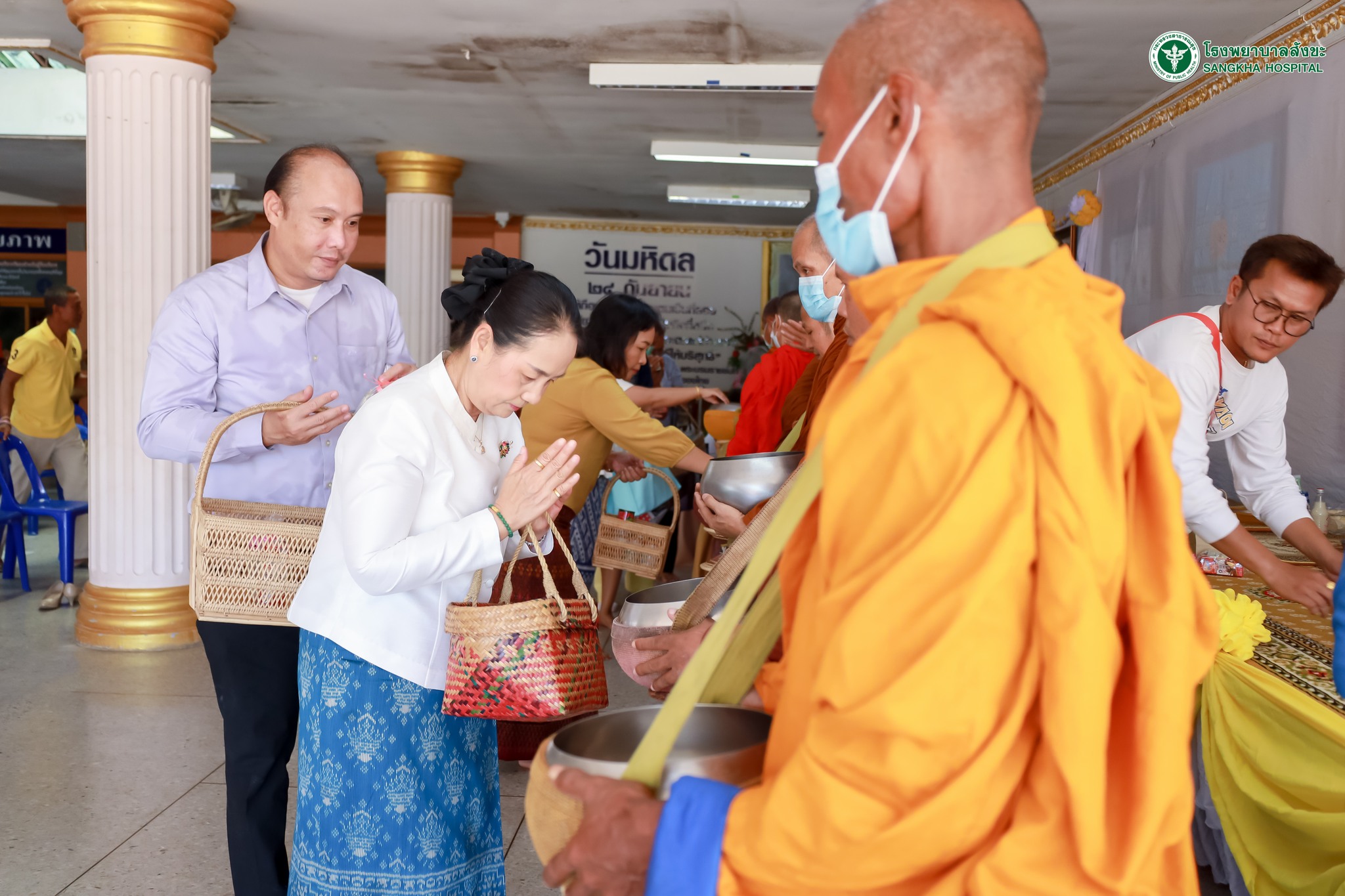 หน้าแรก คณะกรรมการงานสมาธิบำบัด โรงพยาบาลสังขะ จัดกิจกรรมทำบุญตักบาตร เนื่องในโอกาสวันเฉลิมพระชนมพรรษา พระบาทสมเด็จพระวชิรเกล้าเจ้าอยู่หัว รัชกาลที่10 และวันสำคัญทางพระพุทธศาสนา วันอาสาฬหบูชา, วันมาฆบูชา โดยมี นายแพทย์วันฉัตร ธิมาสาร รองผู้อำนวยการโรงพยาบาลสังขะ เป็นประธานในพิธี 362245026_596215796030444_2880941925670421586_n