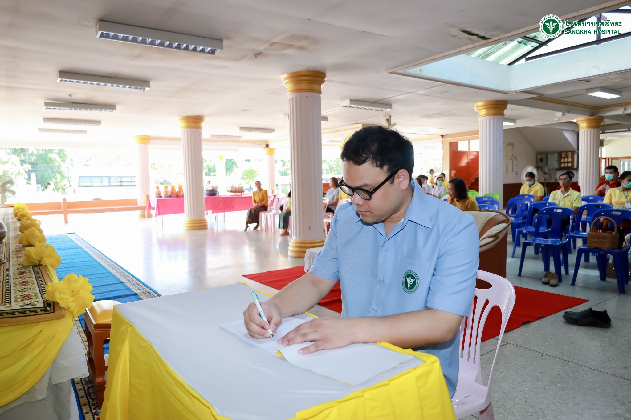 หน้าแรก คณะกรรมการงานสมาธิบำบัด โรงพยาบาลสังขะ จัดกิจกรรมทำบุญตักบาตร เนื่องในโอกาสวันเฉลิมพระชนมพรรษา พระบาทสมเด็จพระวชิรเกล้าเจ้าอยู่หัว รัชกาลที่10 และวันสำคัญทางพระพุทธศาสนา วันอาสาฬหบูชา, วันมาฆบูชา โดยมี นายแพทย์วันฉัตร ธิมาสาร รองผู้อำนวยการโรงพยาบาลสังขะ เป็นประธานในพิธี 363793490_596211299364227_5992353538414927384_n
